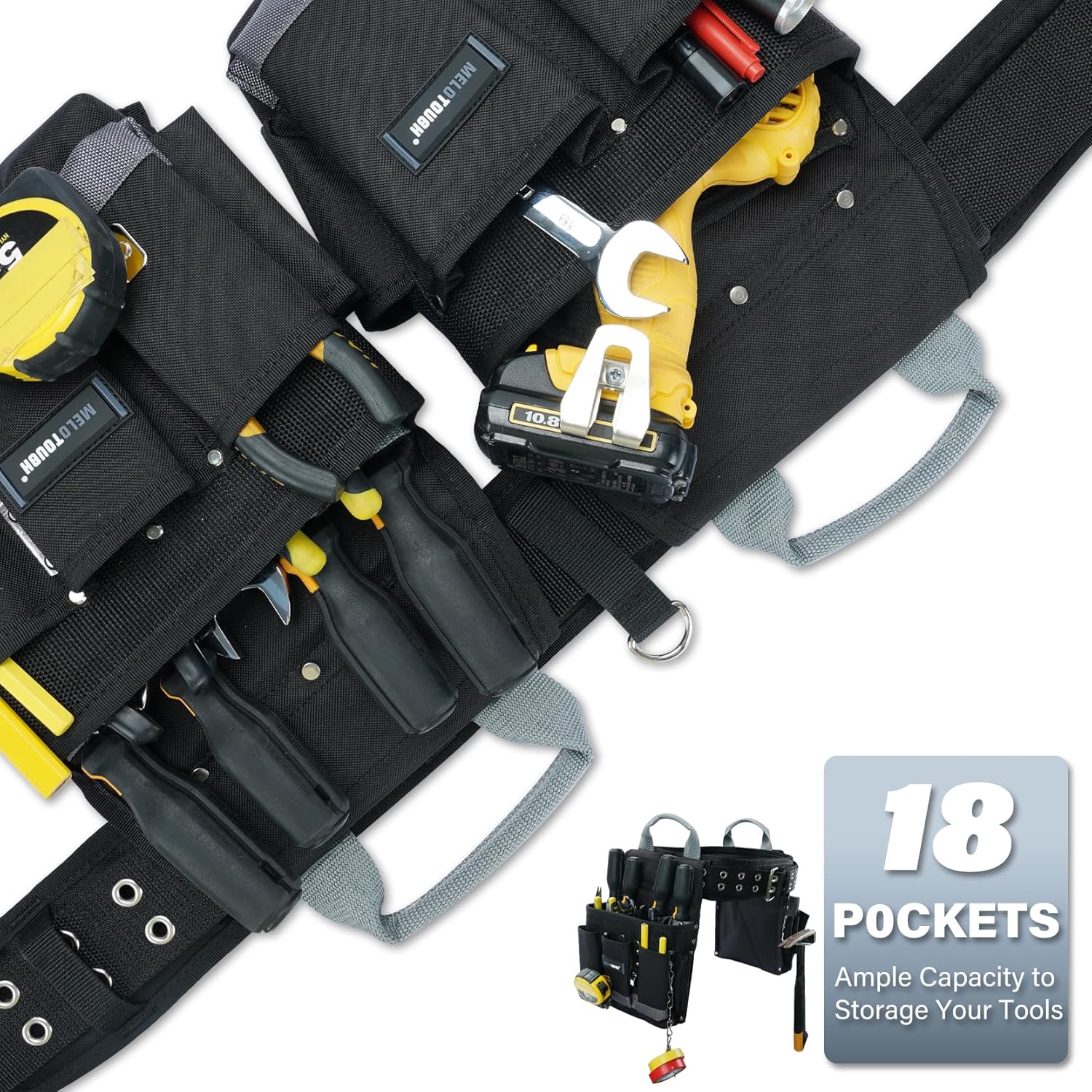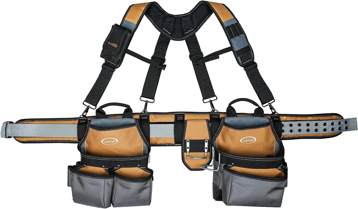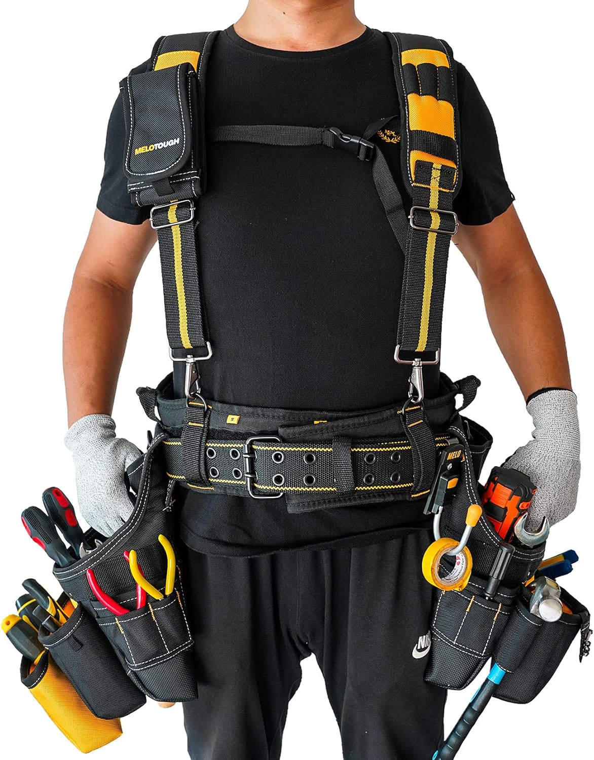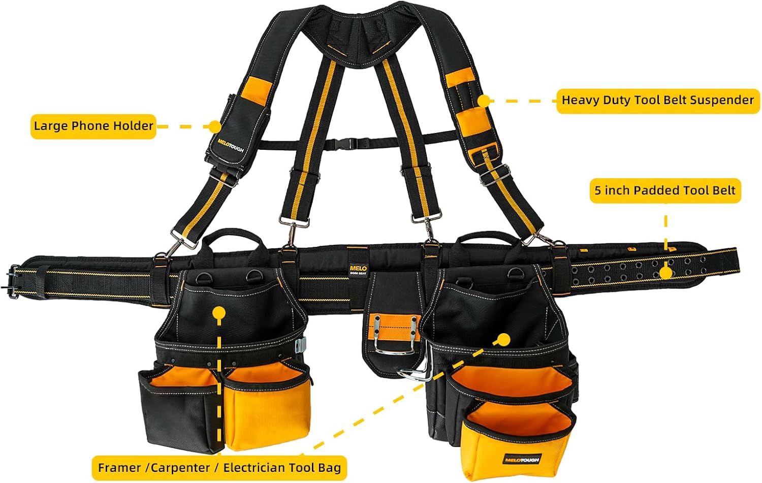 MELOTOUGH Tool Belt with Suspenders Tool Bag Supenders Framers Comb Apron Tool Belt Construction Tool Pouch Builder Heavy Duty Carpenter Suspension Rig for Electrician, Roofing,Contractor