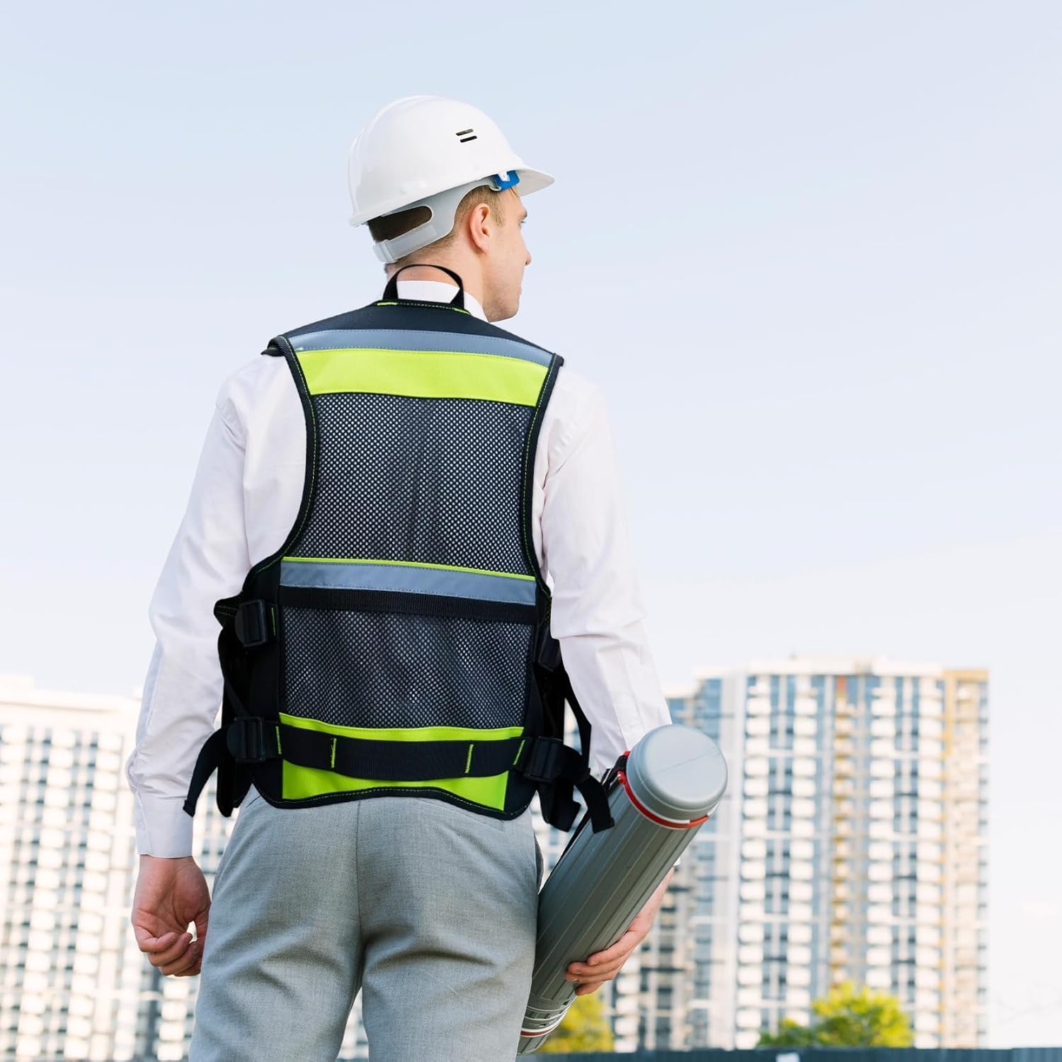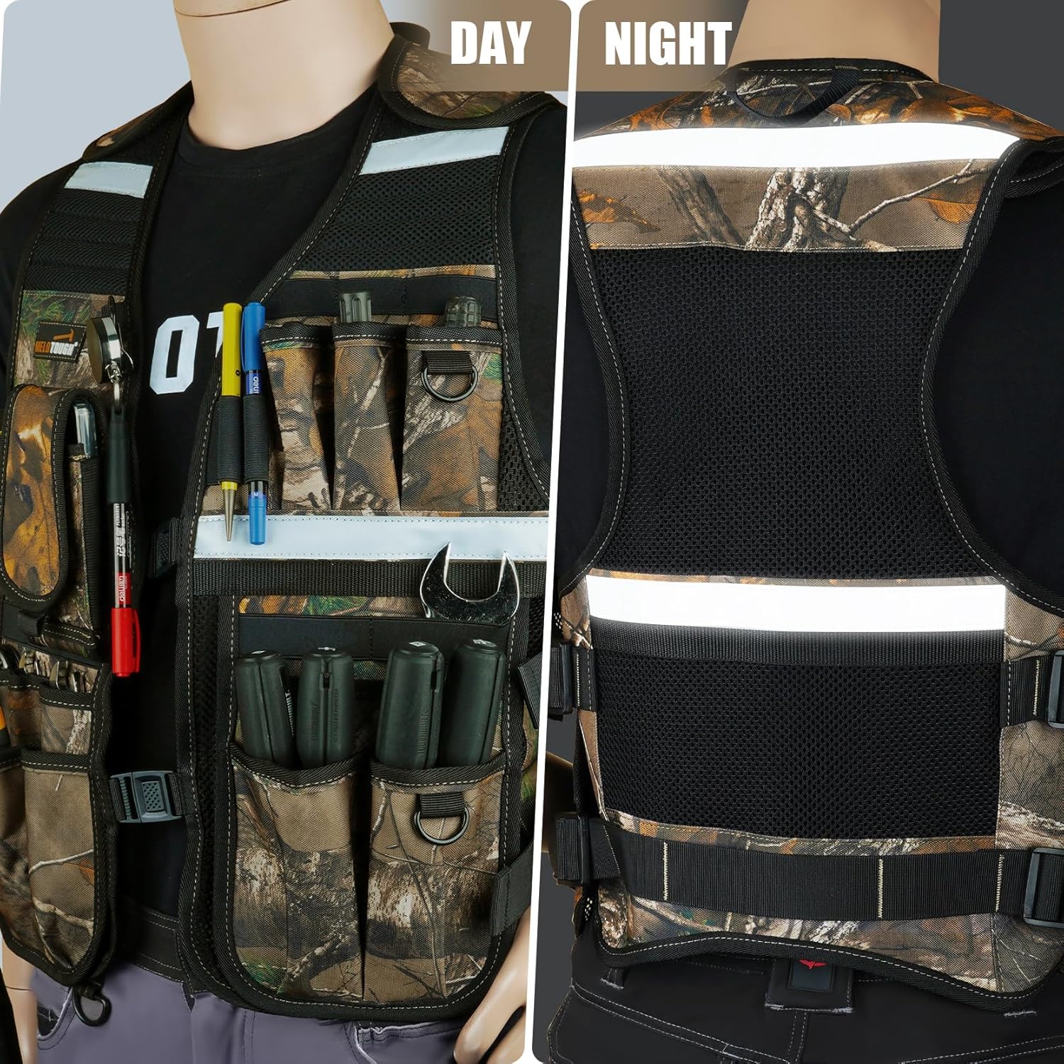 REFLECTIVE STRIP DESIGN: Reflective strips on safety tool vest shoulders,chest and back can improve the safety of night work. -