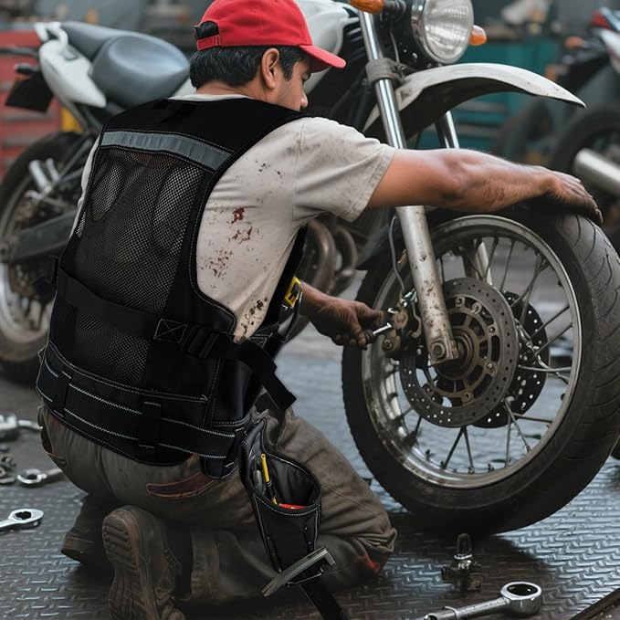REFLECTIVE SAFETY TOOL VEST: Reflective strips on the chest and back enhance visibility in low-light environments -