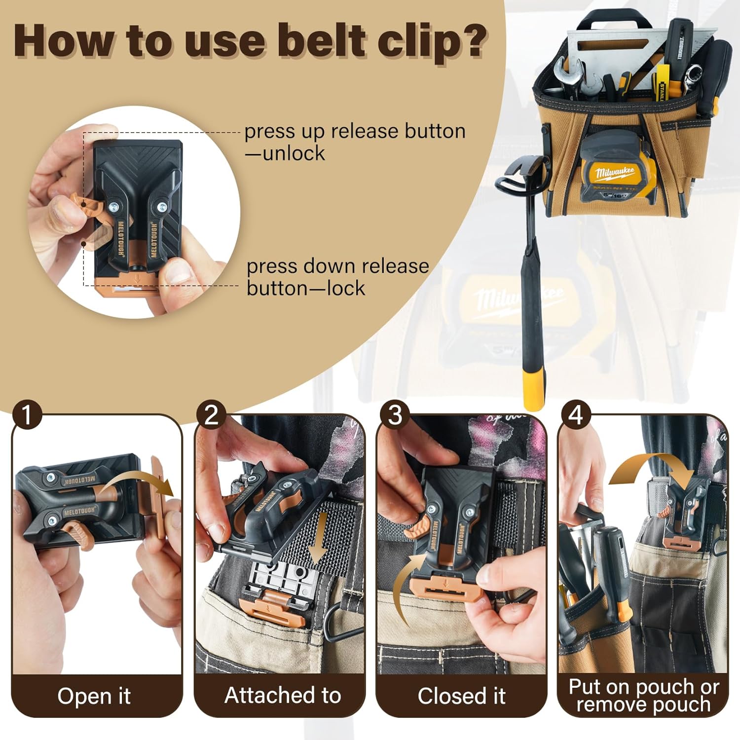 - Great Clip on Plier Pouch System:the ability to easily and quickly detach this from your belt, No more taking the entire tool off.