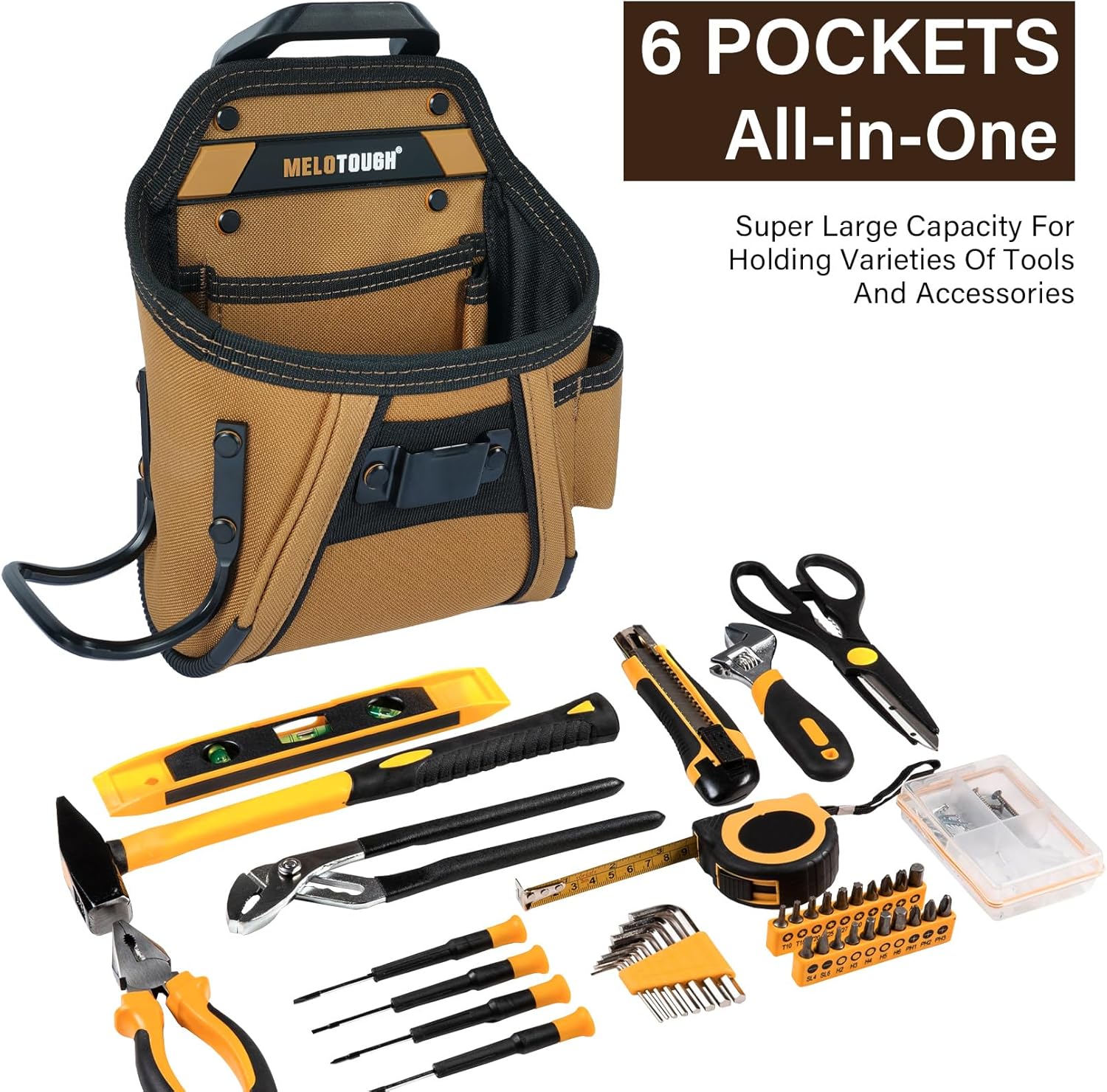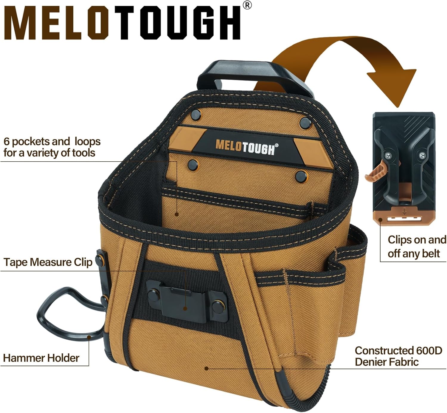 MELOTOUGH Electrician Tool Belt Pouches with Belt Clip Utility Tool Organizer Pouch with Hammer Holder for Electrician,Carpenter,Construction,Technician