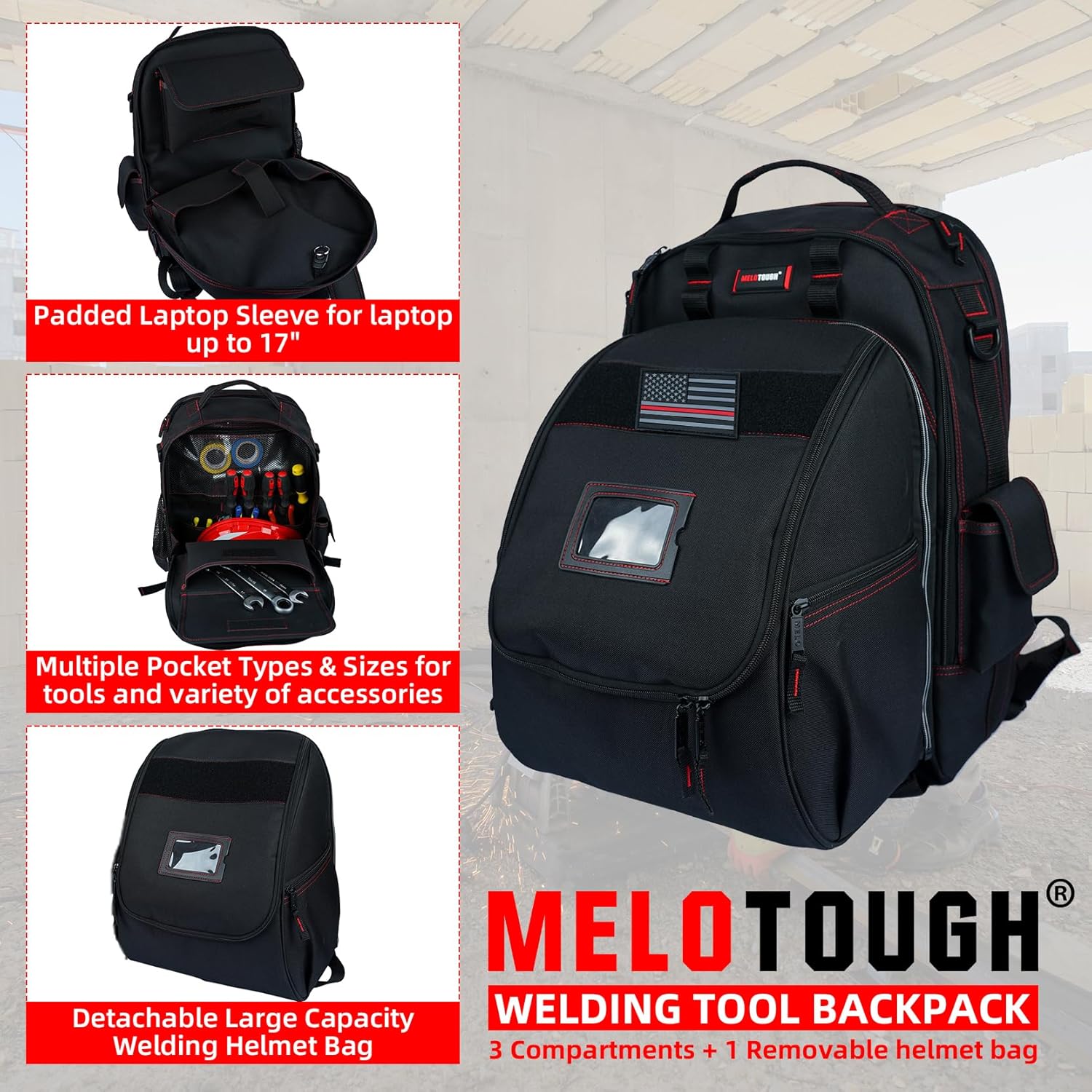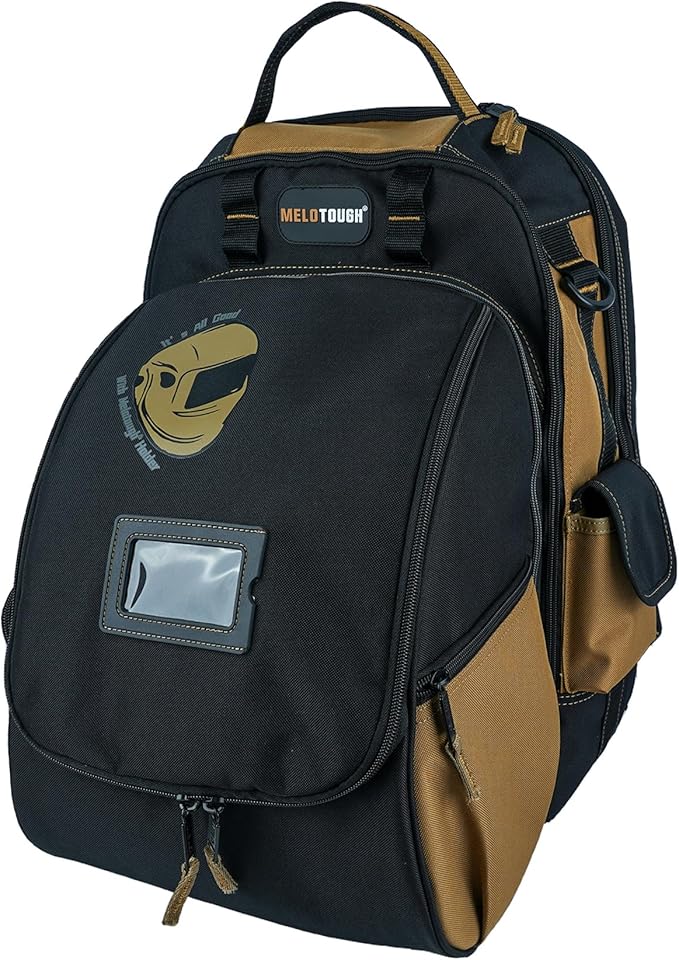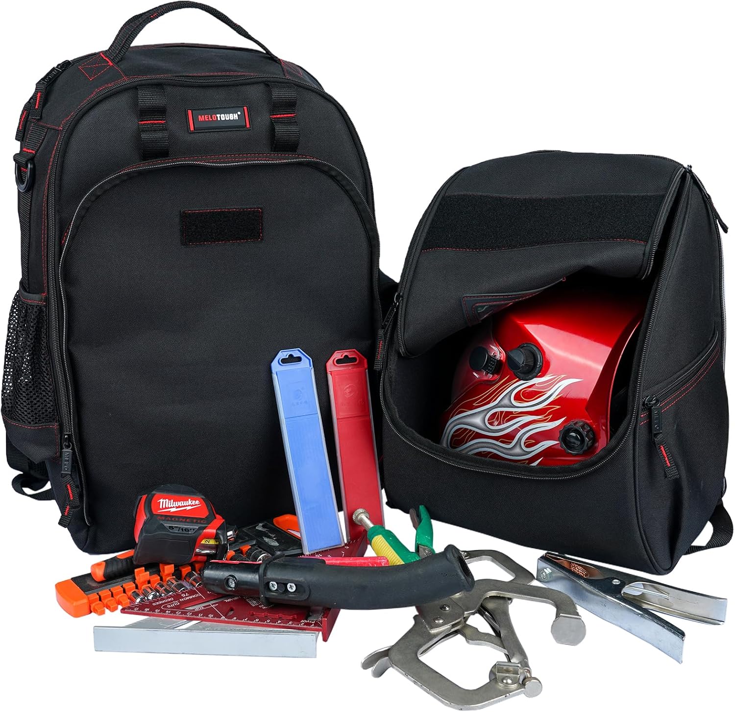 【WT02-BLACK】MELOTOUGH Welding Tool backpack for Tools and Helmet Extreme Gear Pack with Large Capacity Helmet Holder Luggage Storage Bag (Black)