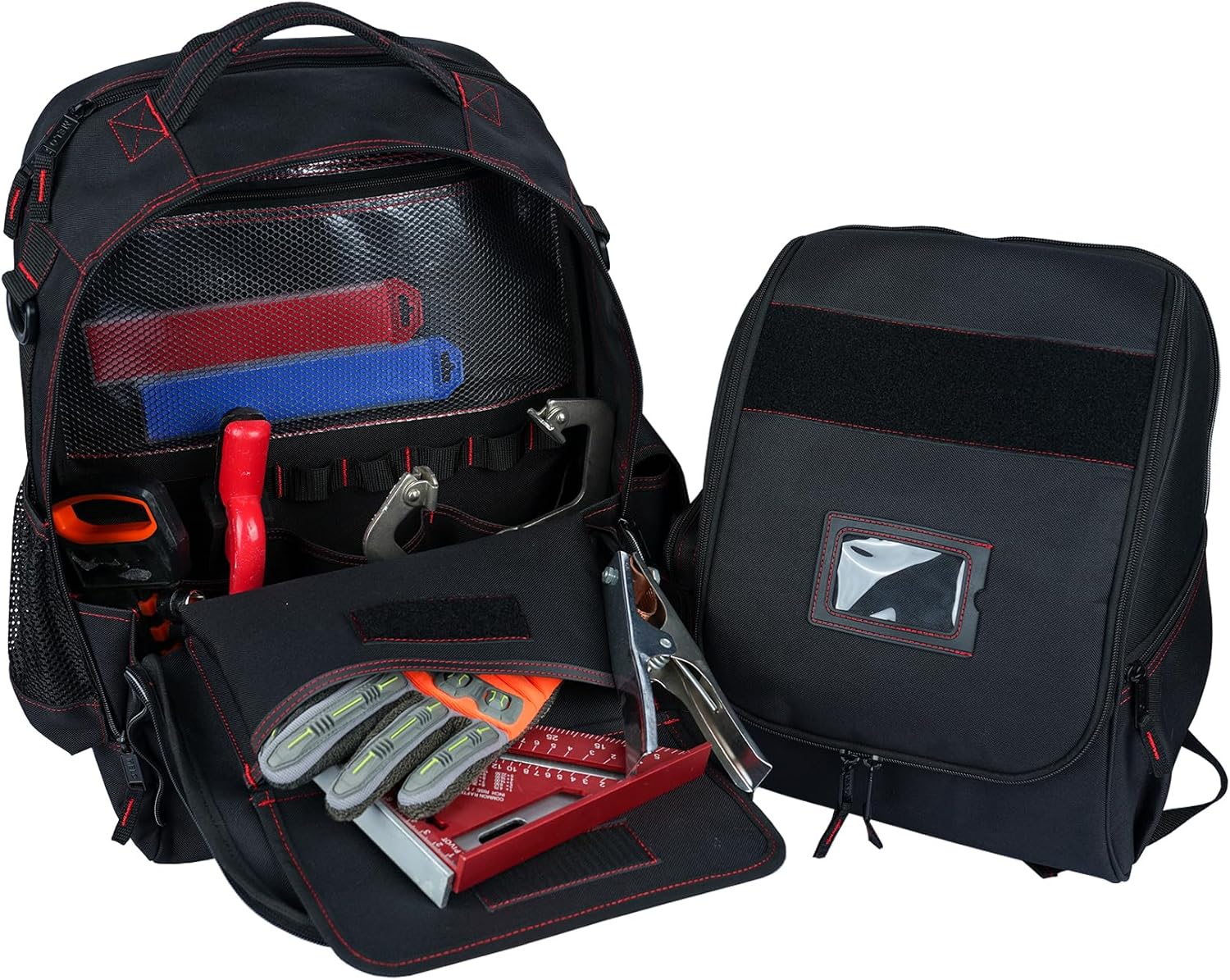 Easy to Access Tool Backpack Storage - Front 3 large open main storage compartment with multiple pockets can be used to store muti helmet and all sizes tools makes it easy to find all items. -