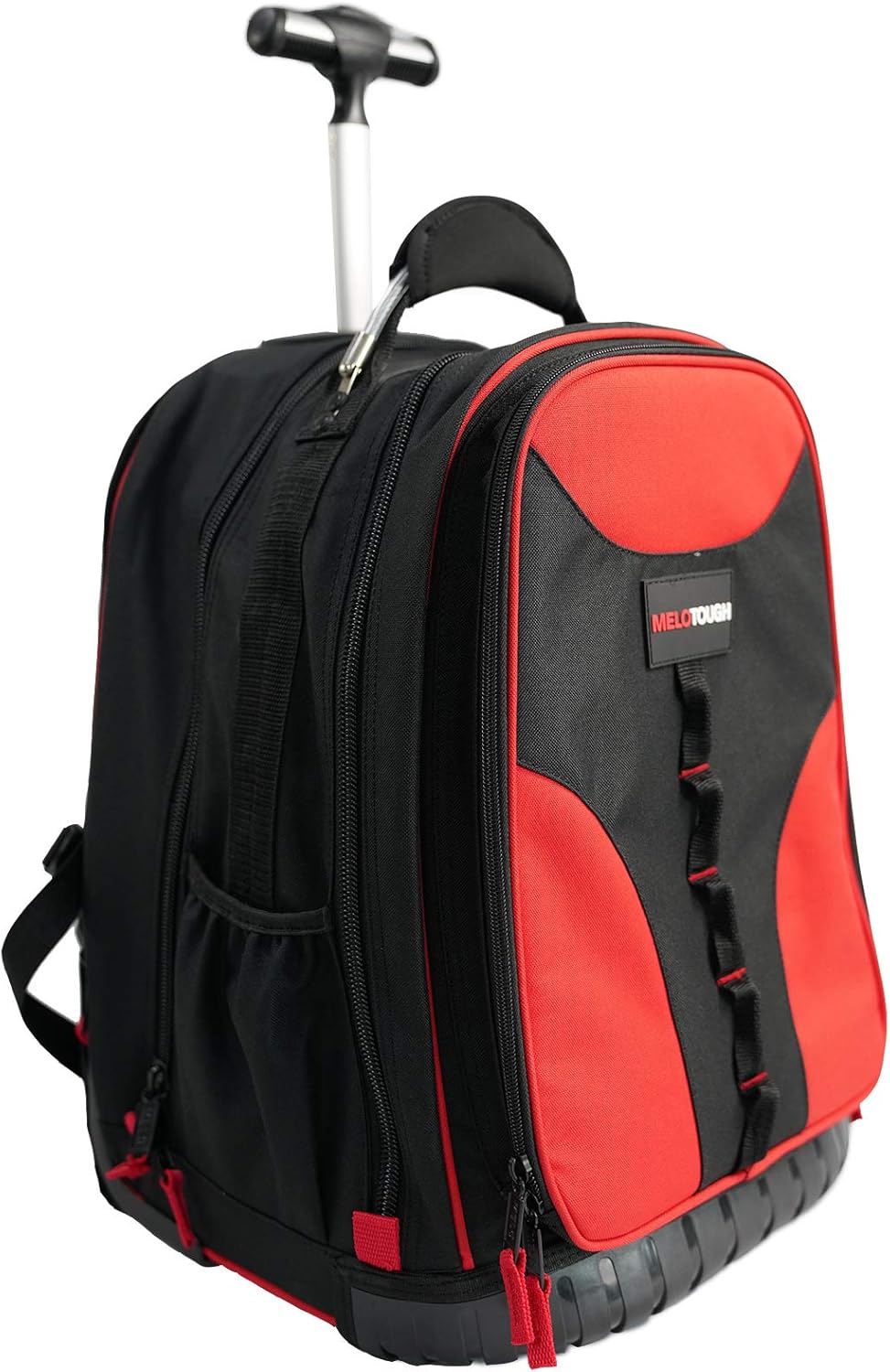 【RTB01-Red】MELOTOUGH Wheeled Rolling Tool Backpack Heavy Duty Tradesman Pro Tool Organizer Including Laptop Sleeve (Red&Black)