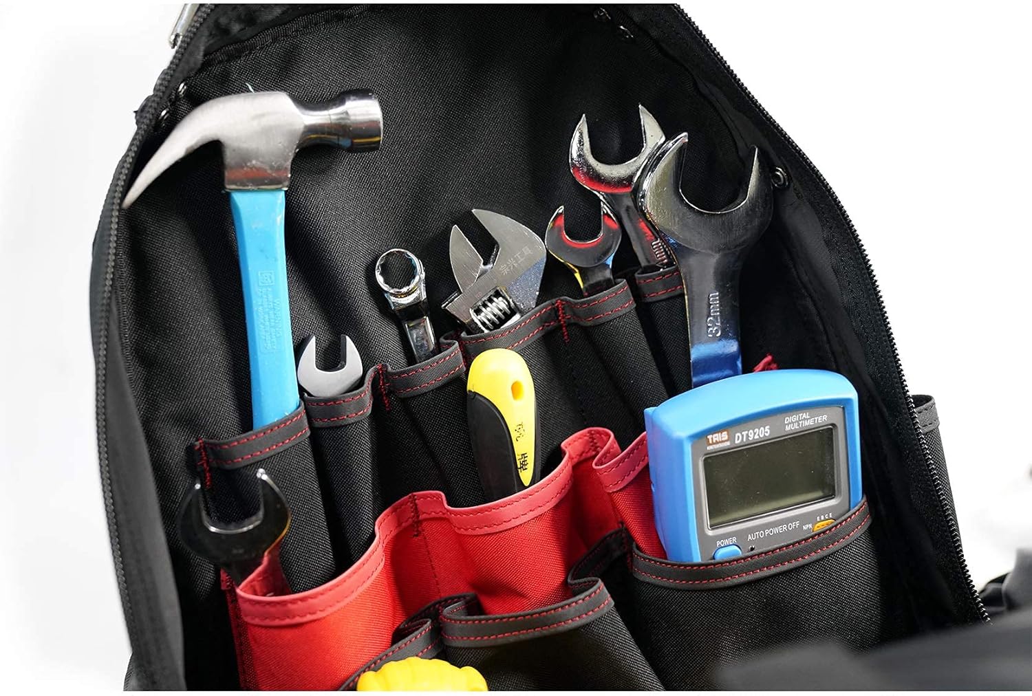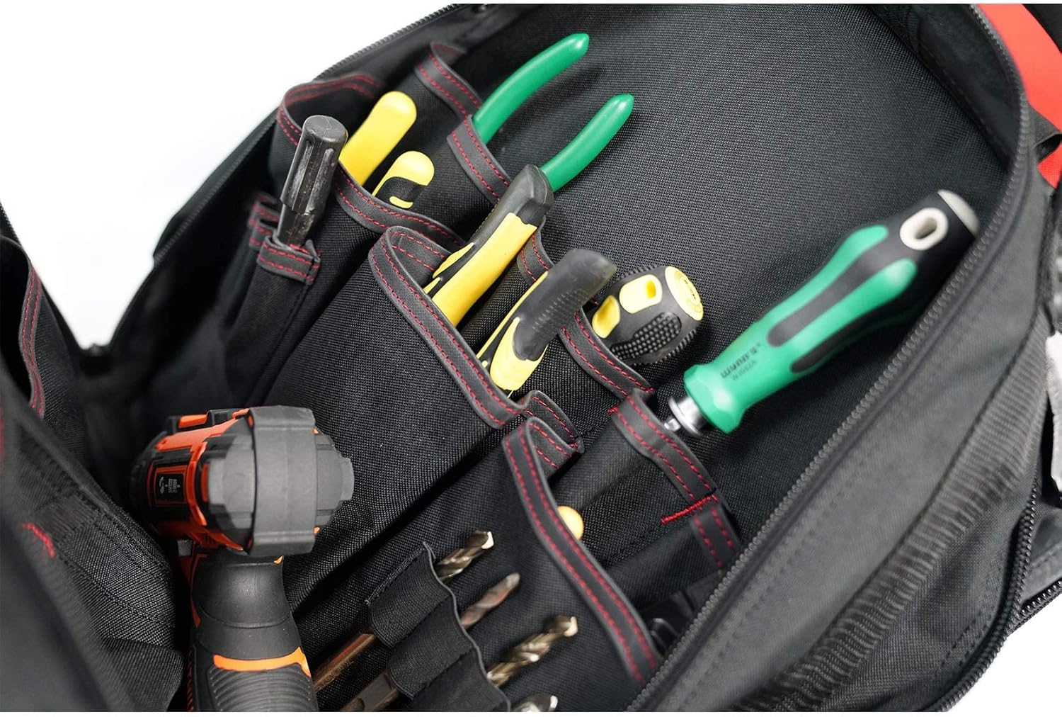🔧【Thoughtful details Roller Tool Bag】Light weight handlebar and wheeled ; Padded Tool backpack straps store away when case is wheeled ;Padded Back Support and Shoulder straps with adjustable chest strap to provide easy transport of your tools. When you go stairs , you can handle the durable /padded handle