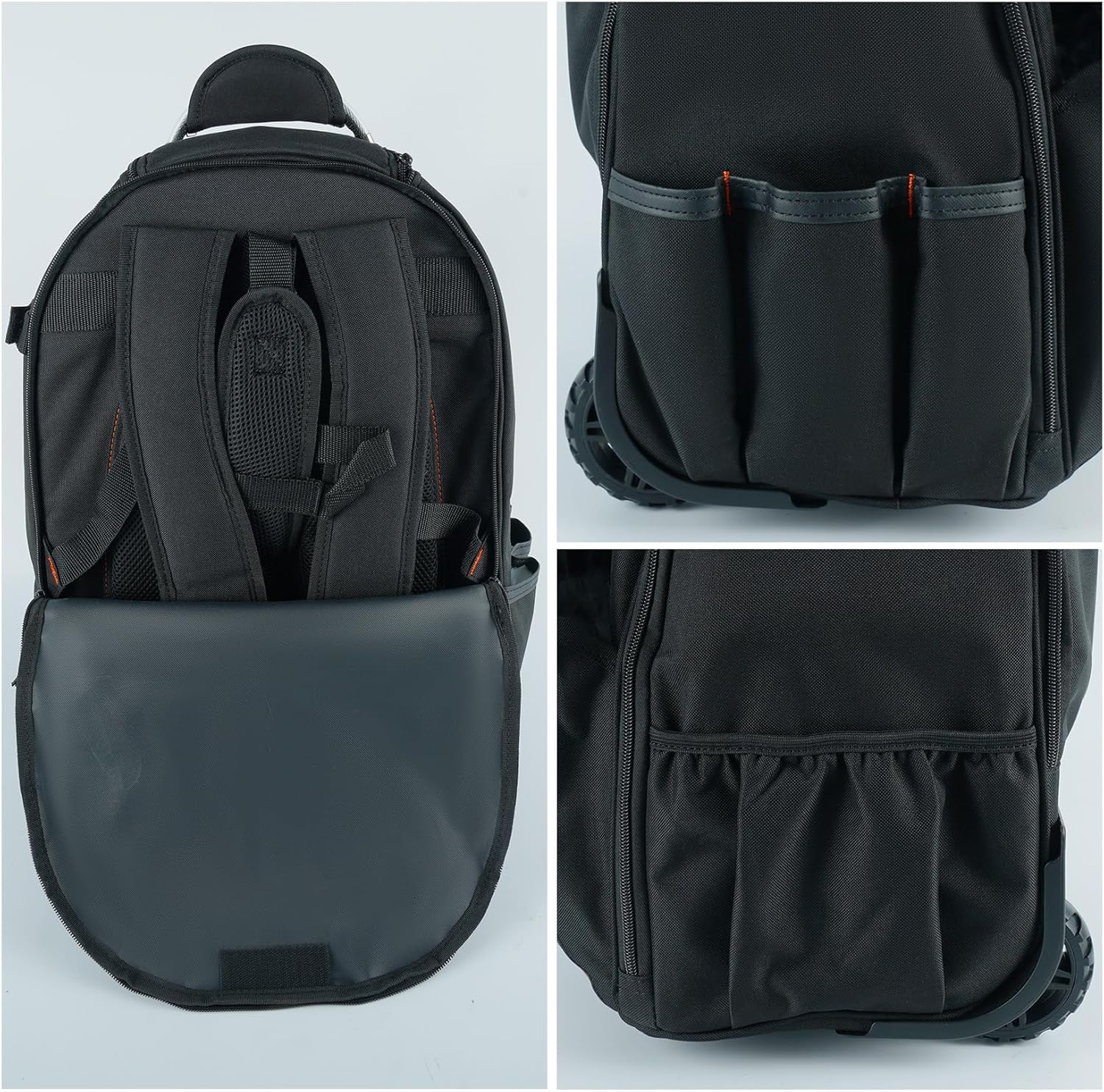 - DURABLE RWA MATERIAL:Our Tool Backpack Made by Constructed 600 denier polyester which is durable material thick makes this rolling tool bag a strong and durable way to store your most-used tools,and engineered to work in the toughest environments.