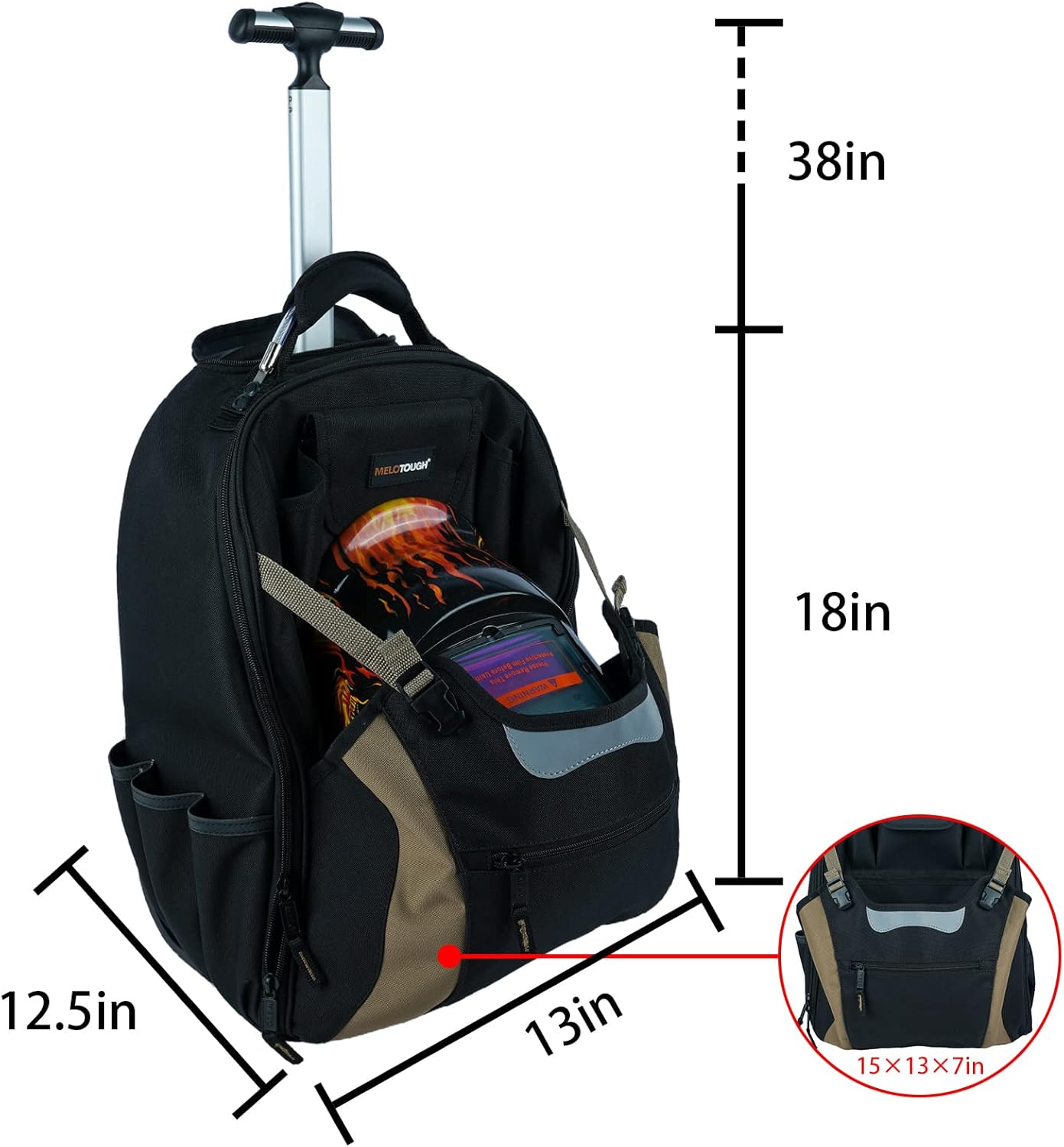 【RTB02-Khaki】MELOTOUGH Wheeled Rolling Tool Bag Welding Backpack with Wheels for Men Heavy Duty Tool Organizer Bag with Helmet Catch (Khaki)