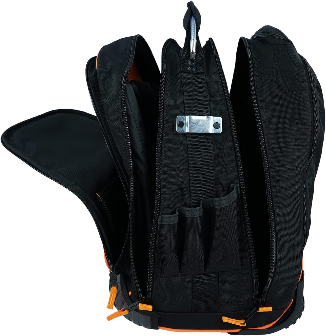 【RTB01-Orange】Wheeled Rolling Tool Bag Backpack, Heavy Duty Tradesman Pro Tool Backpack Organizer with 37 Pockets and Large Interior, Water Resistant(Orange)