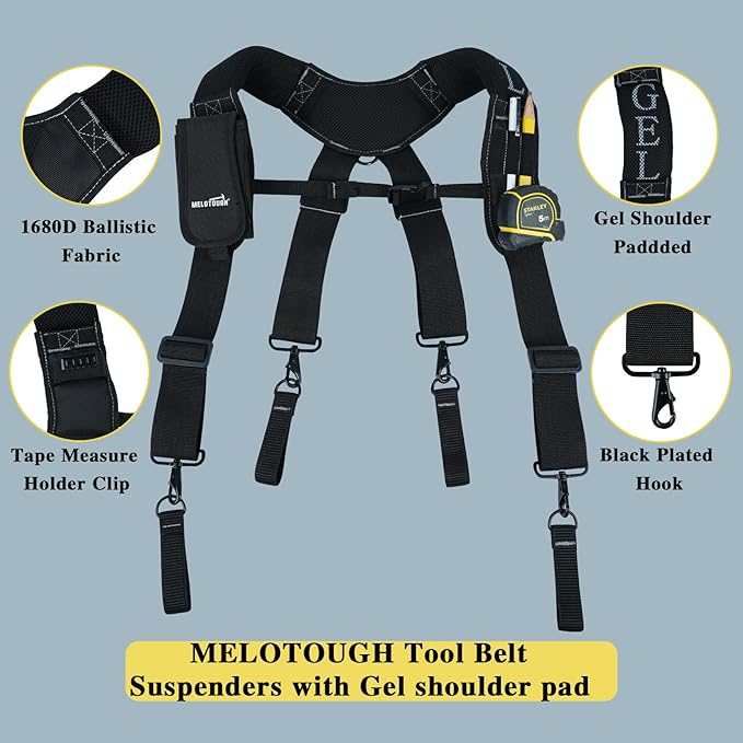 MELOTOUGH Tool Belt Suspenders with Gel Shoulder Padded