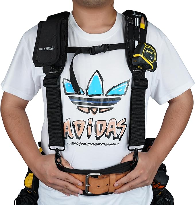 ✅Adjustable Tool Belt Suspenders :Suspenders are a One-Size-Fits-All men’s accessory. They fit all regular size. It easy to apply to any MeloTough tool belt that has a strap that they can wrap around with the provided loops.Heavy duty nickle hook can attached any tool belt without trapping heat and moisture.