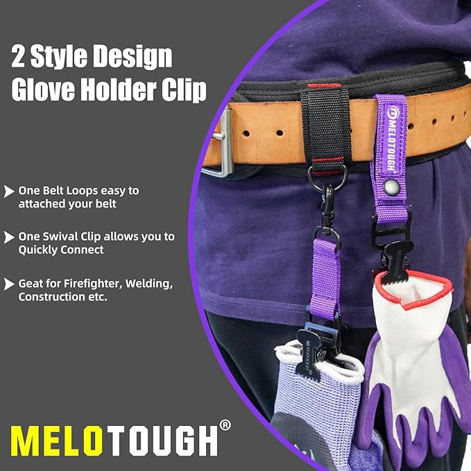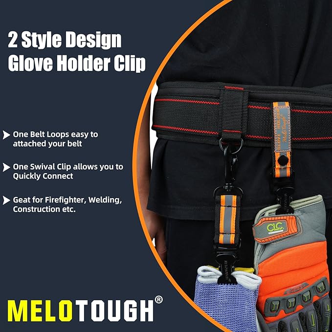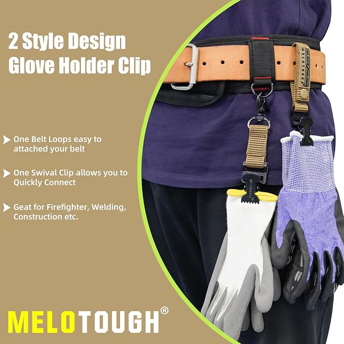 ✅Package Content---You Will Obtain 2 pieces of Glove Holder Clips, One for firefighter gloves clip,one for construction glove clip holder attached to your tool belt.