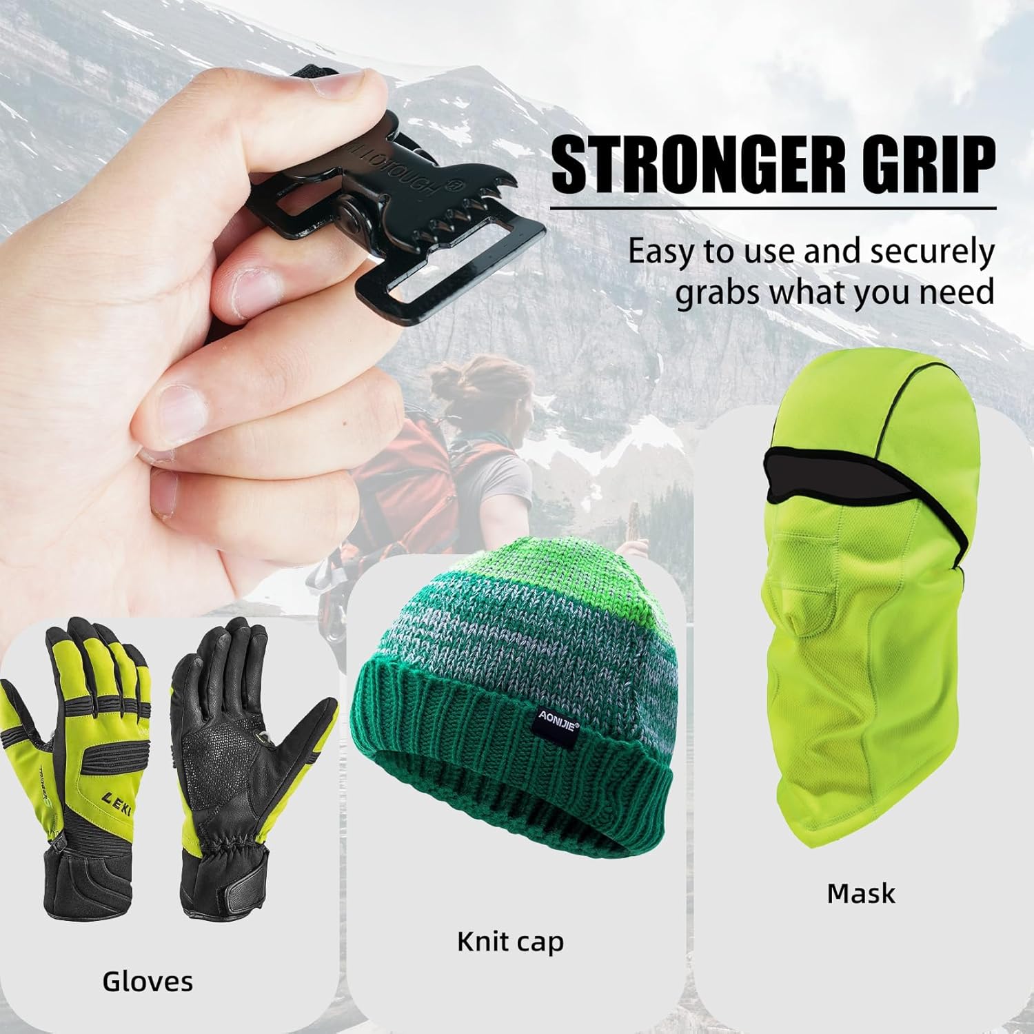 DOUBLE END DESIGN : Our tactical glove clips features a double ended design,you can use both ends to clip what you need. - WIDELY USED : Our glove clips can not only hold tactical gloves, but also welding sleeves, hats,helmet construction gloves, mittens, masks, etc. practical glove holder clip, you can enjoy your outdoor activities happily.