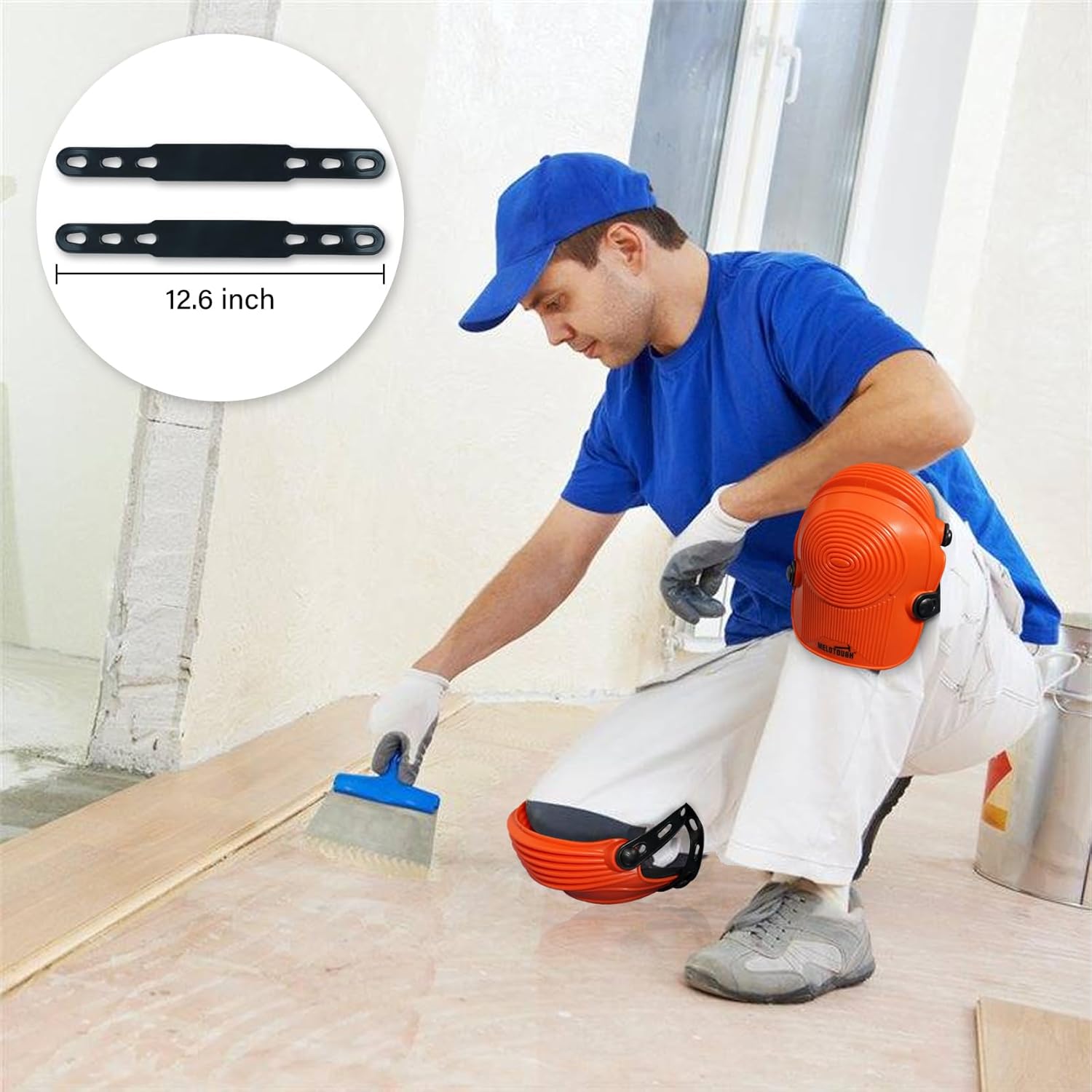 REPLACEABLE ADJUSTMENT STRAP: Rubber adjustable strap is 12.6 inches long and has three buckle holes on each side for easy adjustment, suitable for different leg circumferences. Can be replaced with other adjustable straps to enhance the comfort and personalization of work knee pads -