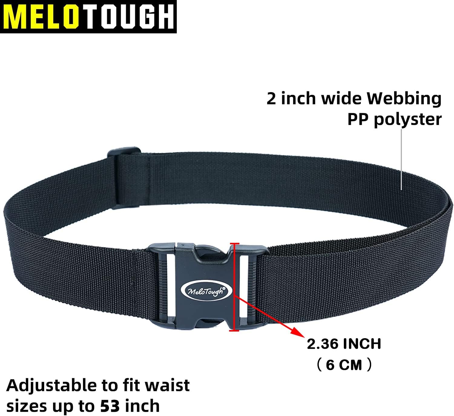 MELOTOUGH 2" Nylon Web Work Tool Belt for Men with Heavy Duty Quick Release Rugged Metal Buckle outdoor men's belt Tool Belts (Black)
