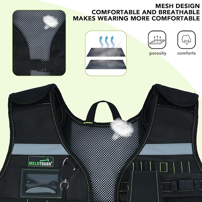 【TV01-Lime】MELOTOUGH Tool Vest Safety Work Vest with Adjustable Straps,Removable Phone Holder for Electrician,Construction,Carpenters