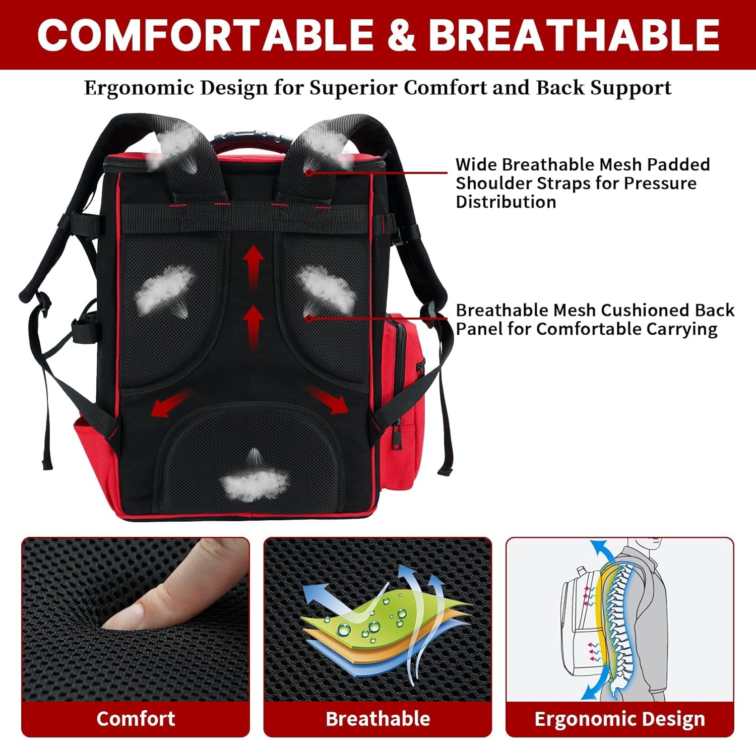 COMFORTABLE CARRYING: Adjustable padded shoulder straps and a chest buckle help distribute the weight of the welding backpack. A large padded back panel enhances carrying comfort and breathability
